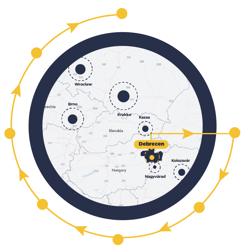 Debrecen víziója, hogy megerősítse vezető szerepét Közép- és Kelet-Európában, mint határokon átnyúló gazdasági, oktatási, tudományos és kulturális központ, illetve, hogy világszerte az e-mobilitás egyik vezető központjává váljon. Az e-mobilitás mellett a város célja további gazdasági diverzifikáció elérése és a fehérgalléros munkavállalók magas arányának fenntartása. A városban található összesen